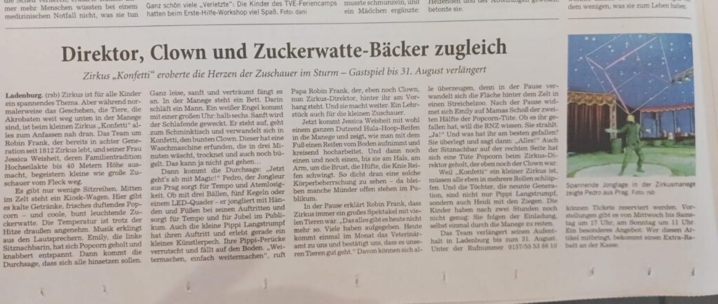 Ladenburg im Zirkusfieber: Ein toller Bericht über uns in der lokalen Zeitung!